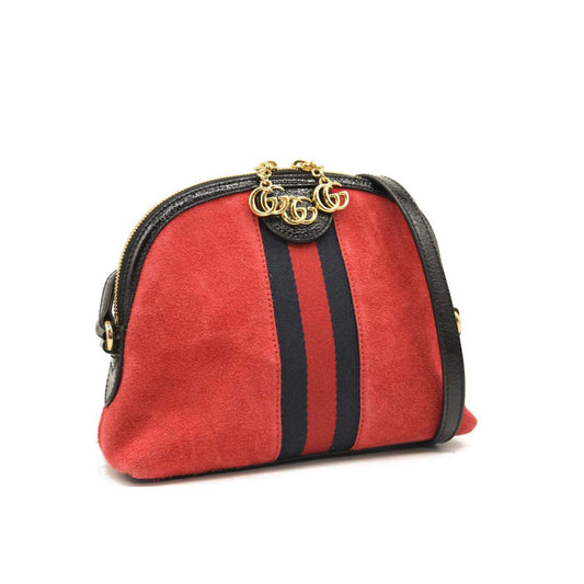 GUCCI SUEDE PATENT WEB GG SMALL OPHIDIA DOME SHOULDER BAG HIBISCUS RED