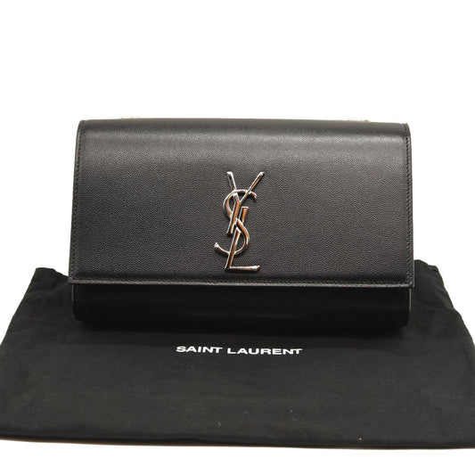 NEW SAINT LAURENT GRAIN DE POUDRE MEDIUM CLASSIC MONOGRAM KATE SATCHEL BLACK