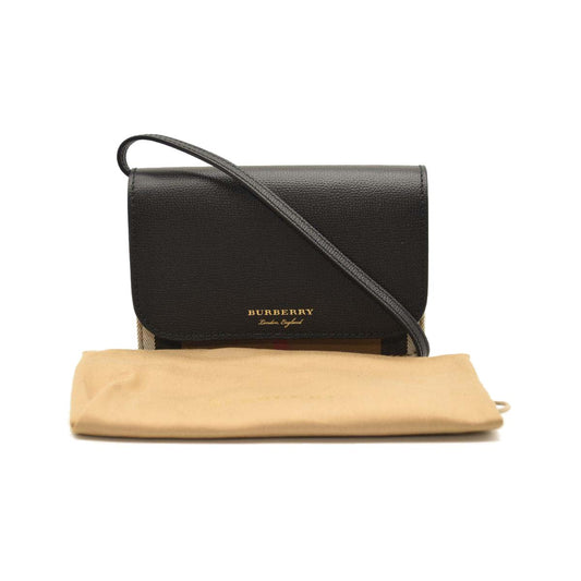 BURBERRY Grained Calfskin House Check Tartan Mix Hampshire Wallet On Chain Black