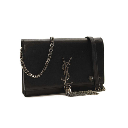 Saint Laurent Smooth Calfskin Classic Monogram Pins Kate Tassel Chain Wallet Black