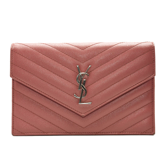 SAINT LAURENT Grain De Poudre Matelasse Chevron Monogram Chain Wallet Mystic Rose