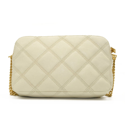 SAINT LAURENT Grained Lambskin Quilted Mini Becky Double Zip Bag Vintage White