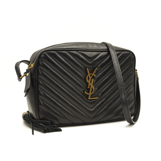 USED Saint Laurent Calfskin Matelasse Monogram Lou Camera Bag Black Tassel