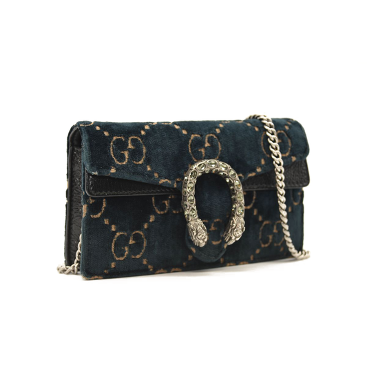 Gucci Dionysus GG Super Mini Blue Velvet Crossbody Bag WOC Chain Wallet