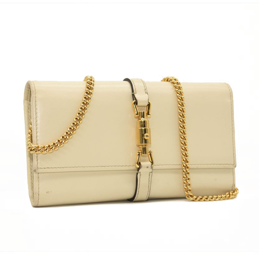 $1100 Gucci Jackie Cream Leather Wallet on a Chain