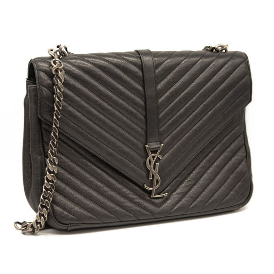 USED Saint Laurent Sheepskin Matelasse Chevron Monogram Large College Satchel Black