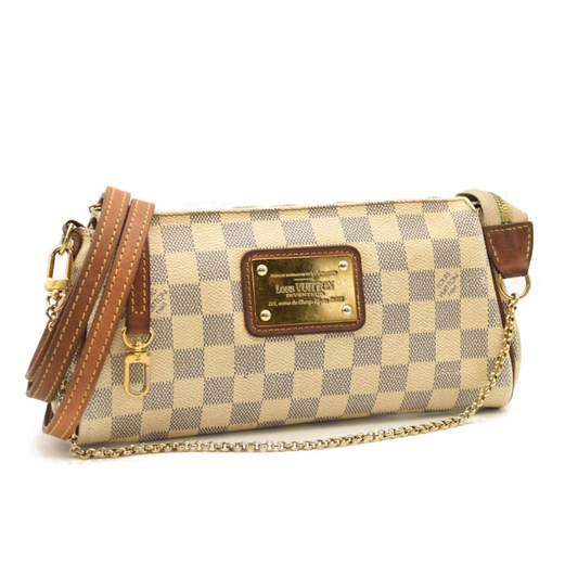 Louis Vuitton Damier Azur Eva Crossbody Shoulder Bag White Clutch Chain