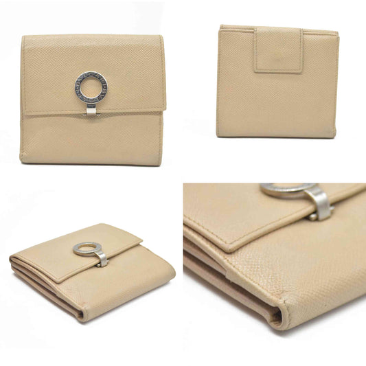 AUCTION $640 BVLGARI BVLGARIBVLGARI Leather Bifold Wallet Beige