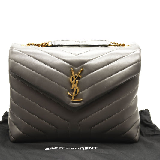 NEW SAINT LAURENT Calfskin Y Quilted Monogram Medium Loulou Chain Satchel Storm