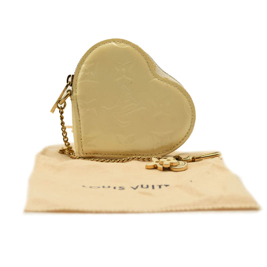 LOUIS VUITTON Vernis Heart Coin Purse Blanc Corail