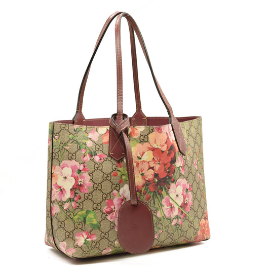 GUCCI GG Supreme Monogram Blooms Medium Reversible Tote Beige Multicolor Dry Rose