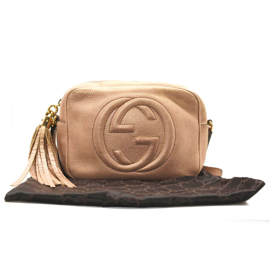 GUCCI Metallic Pebbled Calfskin Small Soho Disco Bag Pink Rose Gold