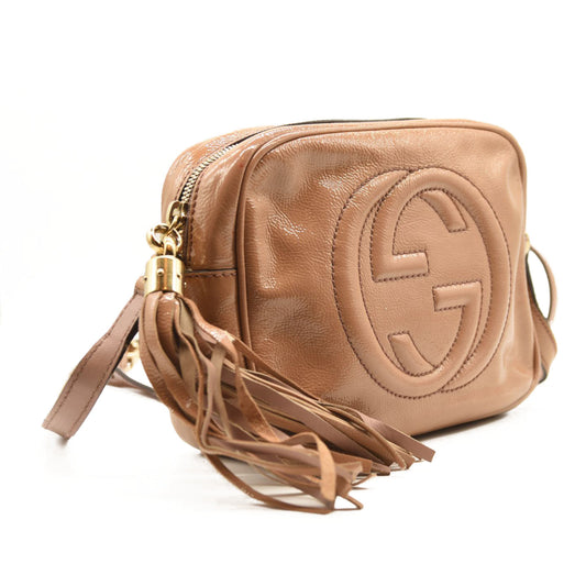 GUCCI Soft Patent Small Soho Disco Bag Dark Cipria