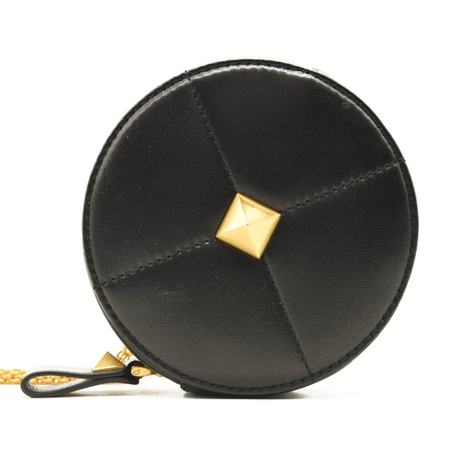 VALENTINO GARAVANI Calfskin Roman Stud Round Crossbody Bag Black