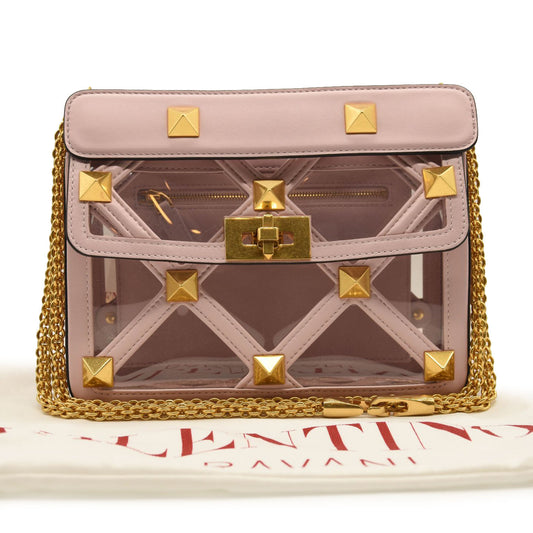 NEW Valentino Roman Stud Transparent Shoulder Bag Pink