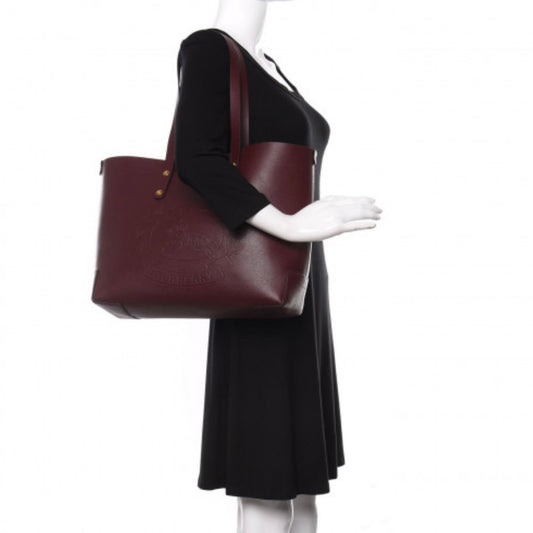Burberry Calfskin Crest Embossed Small Tote Burgundy
