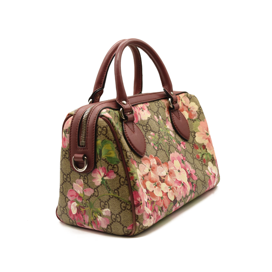 Gucci GG Supreme Monogram Blooms Small Boston Beige Multicolor Dry Rose