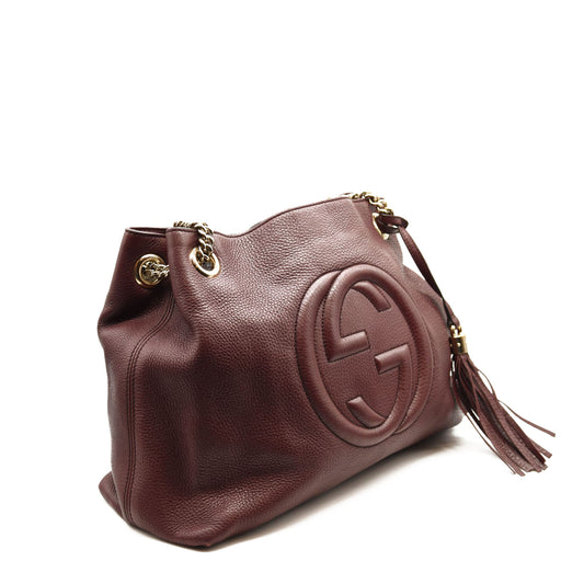 GUCCI Pebbled Calfskin Medium Soho Chain Shoulder Bag Burgandy