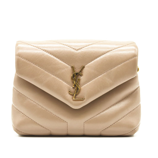 Pre-Owned SAINT LAURENT Calfskin Y Quilted Monogram Toy Loulou Crossbody Bag Latte