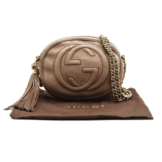 GUCCI Pebbled Calfskin Mini Soho Chain Bag Camelia