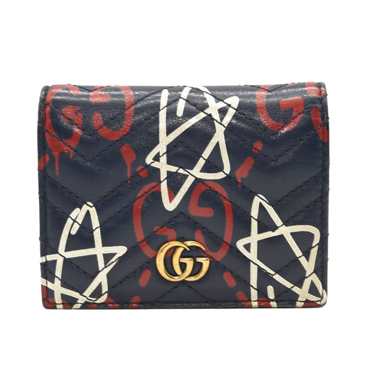 GUCCI Calfskin Matelasse Ghost GG Marmont Card Case Wallet