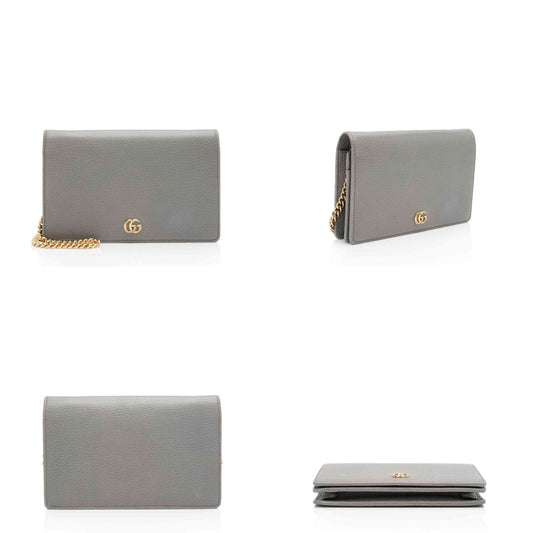 GUCCI Dollar Calfskin Enamel Mini GG Marmont Chain Wallet Grey