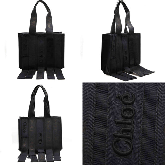 NEW $1430 Chloe Woody Logo Embroidered Webbing Tote Bag