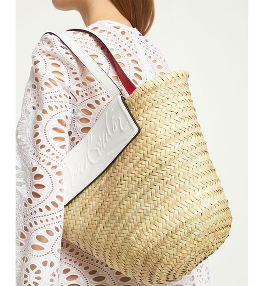 NEW Christian Louboutin Loubishore Logo Straw Tote White