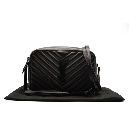 NEW Saint Laurent Calfskin Matelasse Monogram Lou Camera Bag Black Tassel