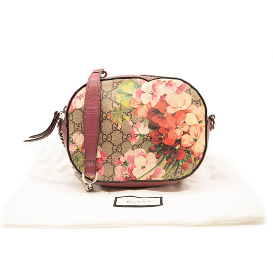 Gucci GG Supreme Monogram Blooms Mini Chain Shoulder Bag Beige Multicolor Dry Rose