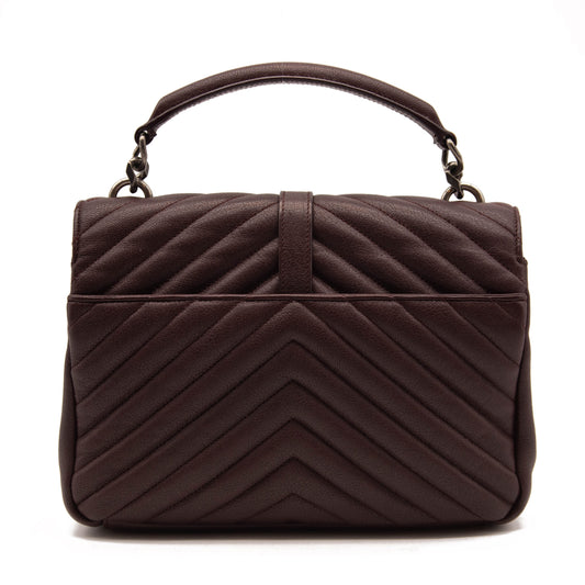 USED Saint Laurent Sheepskin Matelasse Chevron Monogram Medium College Bag Rouge Legion