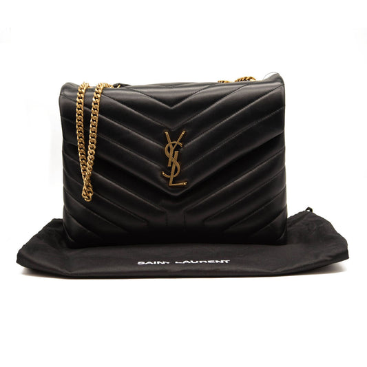 NEW Saint Laurent Calfskin Y Quilted Monogram Medium Loulou Chain Satchel Black