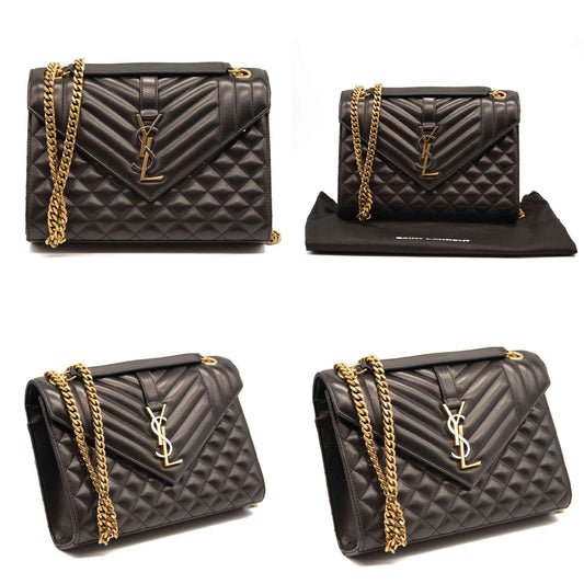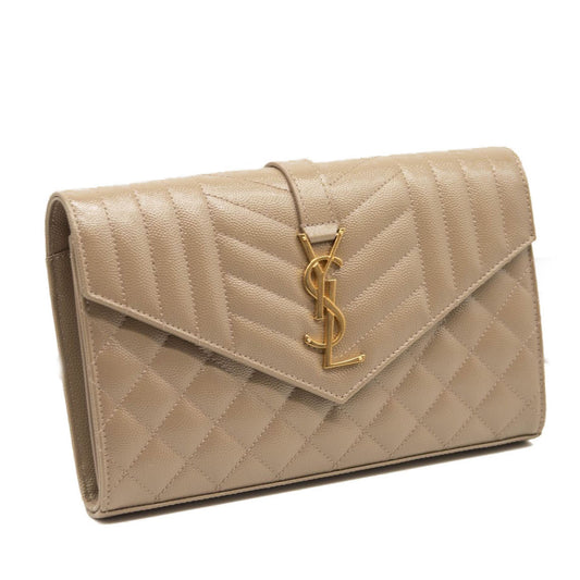 NEW Saint Laurent Envelope Wallet On Chain Bag Mixed Matelasse Dark Beige