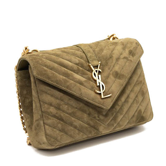 NEW Saint Laurent College Medium Chain Bag in Quilted Suede Loden Green