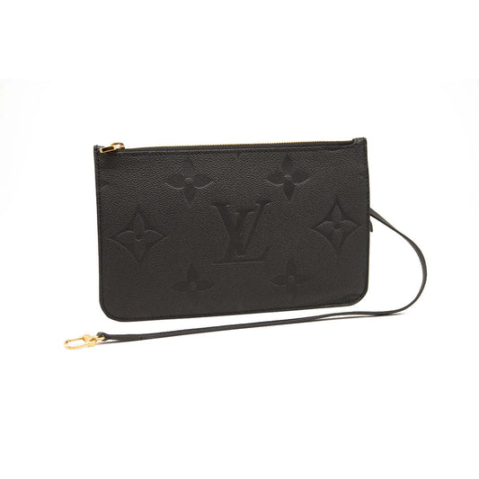 Microchipped LOUIS VUITTON Empreinte Monogram Giant Neverfull MM Pochette Black Wristlet Shoulder Bag