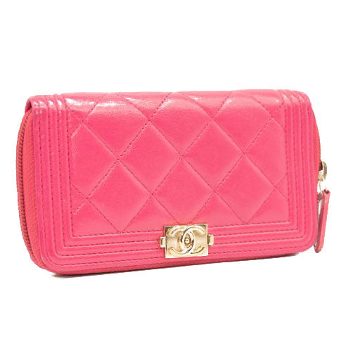 Chanel Quilted Small Boy Zip Around Wallet Fuchsia