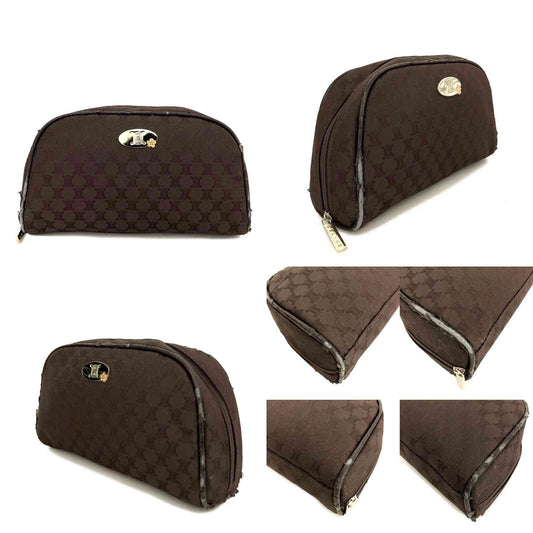 PRE-ORDER CELINE Macadam Cherry Blossoms Motif Canvas Cosmetic Pouch Bag Brown