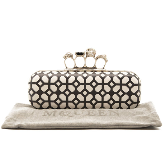 Alexander McQueen White/Black Patent Leather Skull Knuckle Clutch Box