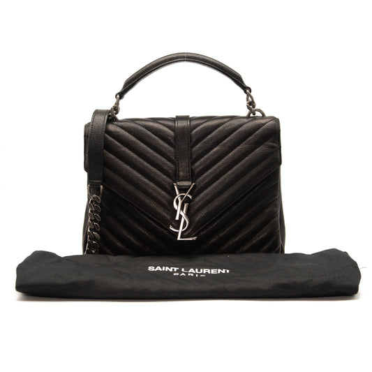 Saint Laurent Matelasse Chevron Monogram Medium College Bag Black