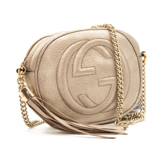Gucci Metallic Pebbled Calfskin Mini Soho Chain Bag Golden Beige