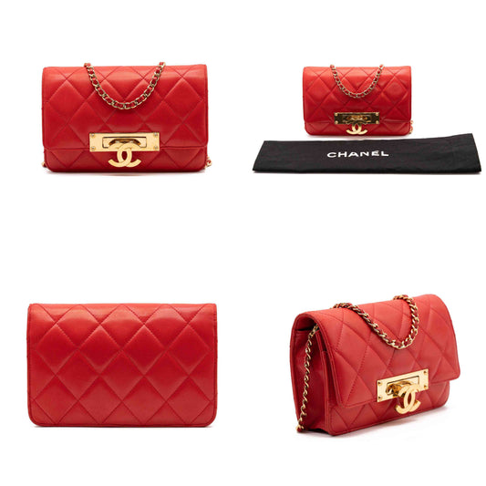 Chanel Lambskin Quilted Golden Class Wallet on Chain woc Red