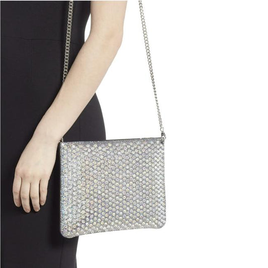 Christian Louboutin Crossbody Clutch Loubiclutch Metallic Leatloubiclutch Metallic Silver Leather Shoulder Bag