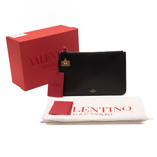 NEW Valentino Clutch Rockstud Small Leather Pouch Black Red 2022 with box