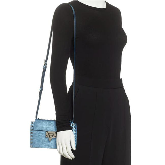 NEW Valentino Small Rockstud Metallic Blue Leather Shoulder Bag