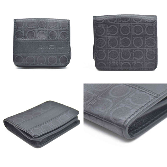 Salvatore Ferragamo Gancini Leather Coin Purse Wallet Black