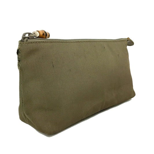 GUCCI Bamboo Canvas Cosmetic Pouch Bag Khaki