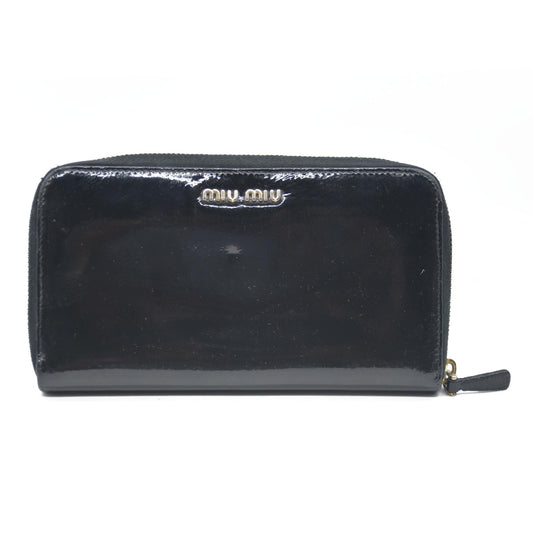 MIU MIU Logo Ribbon Patent Leather Zip Around Long Wallet Black