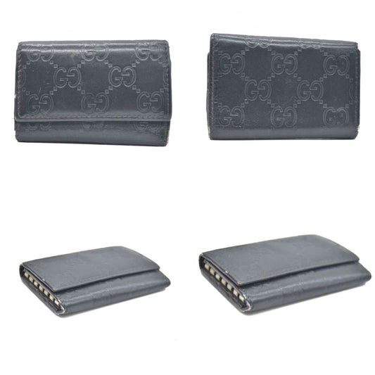 GUCCI Ssima GG Logo Leather 6 Ring Key Case Black