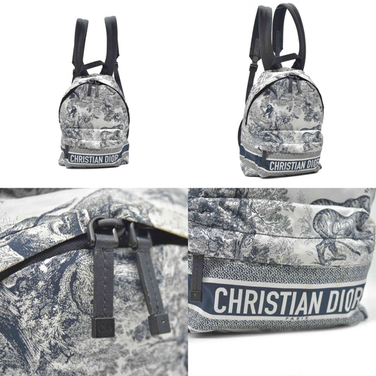 Christian Dior Nylon Technical Fabric Toile De Jouy Small Diortravel Backpack Blue