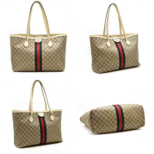 GUCCI GG Supreme Monogram Medium Ophidia Shopping Tote Cream